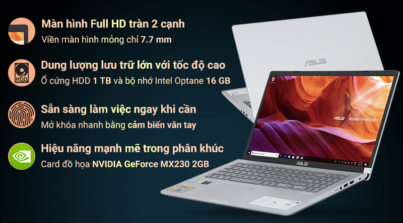 Kết hợp tính năng giữa hai công nghệ hiện đại, ổ lưu trữ kép trên ASUS 15 X509FJ cho khả năng lưu trữ dung lượng dữ liệu cực lớn với tốc độ truy xuất dữ liệu chớp nhoáng. Bạn sẽ thoải mái lưu trữ các file dữ liệu lớn như hình ảnh, phim ảnh hoặc những ca khúc yêu thích trên ổ cứng HDD truyền thống; tải ứng dụng và giải quyết công việc siêu nhanh với ổ lưu trữ SSD hoặc Intel Optane.