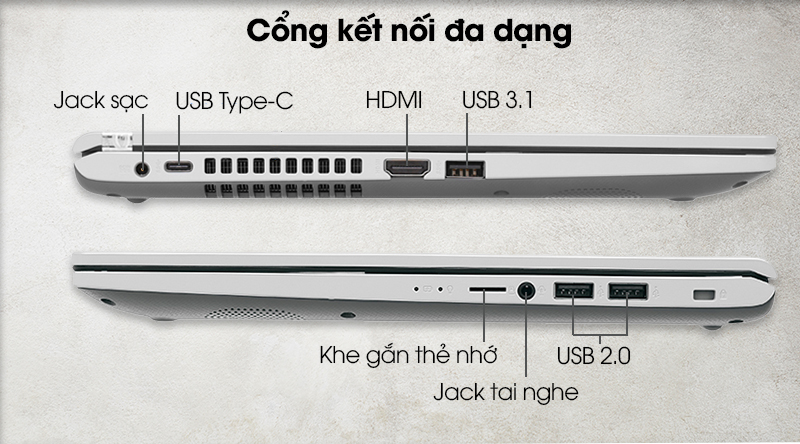 ASUS Laptop X509FJ được trang bị cổng USB Type-C™ 3.1 cho phép kết nối hai chiều, hỗ trợ thiết kế hai mặt khiến cho việc kết nối các thiết bị trở nên dễ dàng nhất có thể. USB-C còn đem đến tốc độ truyền dữ liệu nhanh hơn đến 10 lần so với các chuẩn kết nối USB 2.0 trước đây. Ngoài ra còn có cổng USB 3.1 Thế hệ 1 và USB 2.0, đầu ra HDMI và đầu đọc thẻ MicroSD – cho phép bạn kết nối dễ dàng với tất cả các thiết bị ngoại vi hiện tại, màn hình và máy chiếu hết sức nhanh chóng.