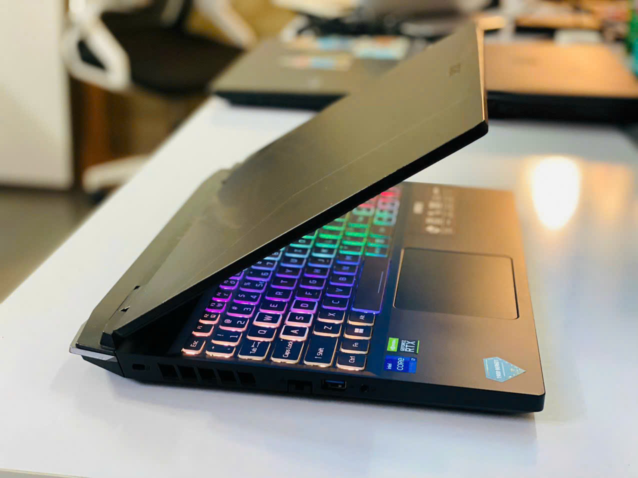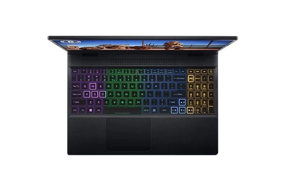 Trong một thân máy nhỏ gọn, Acer Nitro 5 Tiger AN515-58-769J vẫn trang bị bàn phím với kích thước lớn, khoảng cách hợp lý nhờ việc bố trí các phím sát ra cạnh máy. Chưa hết, bàn phím này còn hỗ trợ đèn LED RGB 4 vùng tuyệt đẹp, cho bạn thêm niềm cảm hứng khi chơi game. Các phím WSAD và mũi tên cũng được làm nổi bật để bạn thao tác nhanh và chính xác hơn.
