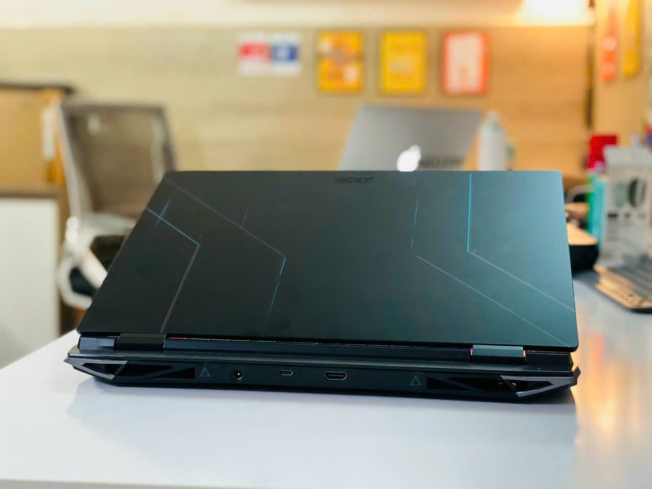 So với dòng Acer Nitro 5 trước đây, Nitro 5 Tiger 2022 có một thiết kế hoàn toàn mới. Máy đi theo ngôn ngữ vuông vắn, hiện đại và gọn gàng hơn với viền màn hình siêu mỏng, bàn phím tràn sát ra cạnh bên máy. Các đường cắt cũng được làm khỏe khoắn, mạnh mẽ hơn. Đặc biệt, phần mặt lưng tạo điểm nhấn với những dải màu độc đáo, đậm chất gaming. Bạn sẽ có một chiếc laptop vừa đẹp mạnh mẽ, lại vừa gọn gàng di động.