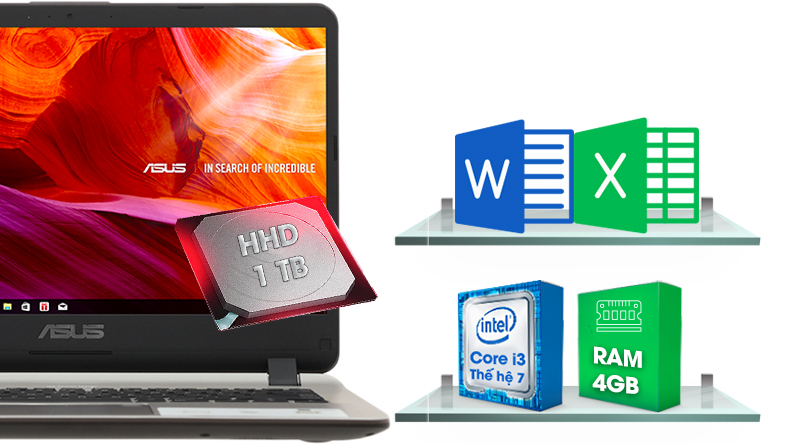 Laptop Asus X407 được tiếp sức bởi bộ vi xử Intel Core i3 thế hệ thứ 7 và 8 GB RAM. Máy có thể chạy tốt các ứng dụng văn phòng như Excel, Word... đa nhiệm khá tốt.