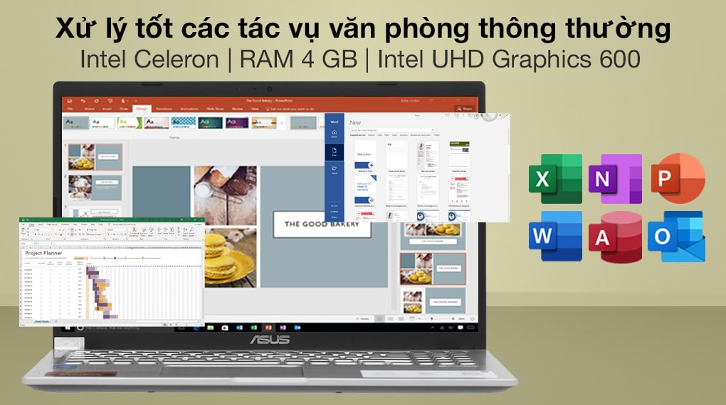 - Cấu hình ổn định tác vụ văn phòng: Laptop Asus VivoBook mang trong mình CPU Intel Celeron N4020 kết hợp cùng card màn hình tích hợp Intel UHD Graphics 600, với mình đây là cấu hình đủ để chạy các tác vụ Word, Excel, PowerPoint,... mượt mà.