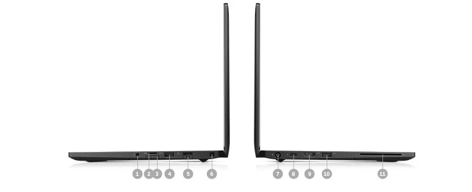 Laptop Dell Latitude 7280 được trang bị rất đầy đủ các cổng kết nối, đáp ứng tốt nhu cầu chia sẻ thông tin và dữ liệu bao gồm: 1 USB C, 1 uSD 4.0 Memory card reader, 2 USB 3.1,1 HDMI, 1 RJ-45, 1 External uSIM,…