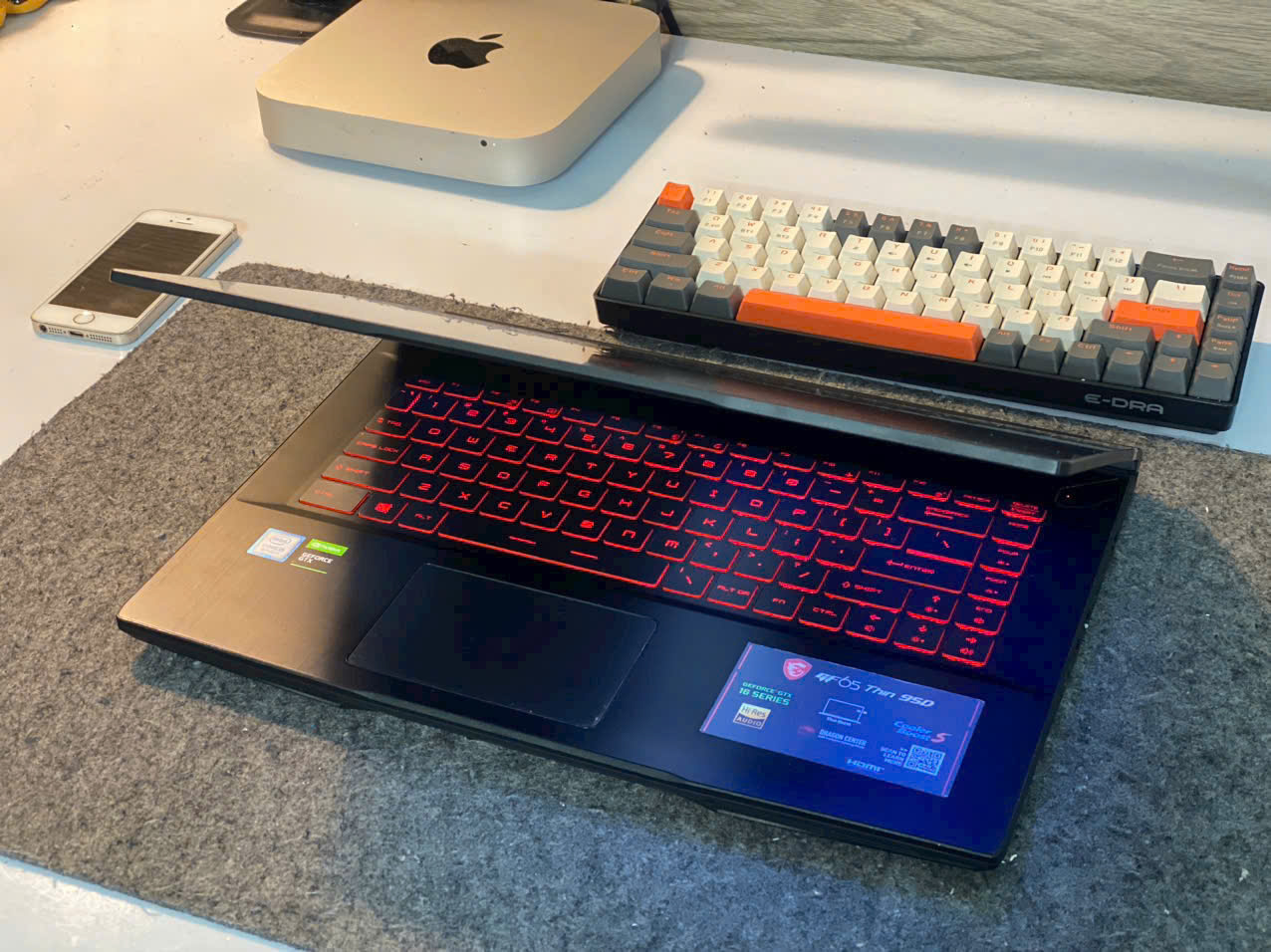 Laptop MSI đã mang đến một phiên bản laptop gaming với khối lượng 1.86 kg và dày 21.7 mm, cùng nắp lưng được thiết kế bằng kim loại cao cấp, cùng bạn chiến game đỉnh cao dù ở bất kỳ đâu, đồng hành cùng bạn trên mọi hành trình. Thân máy được làm bằng nhựa phần nào giúp máy có khả năng tản nhiệt tốt hơn khi chiến game.