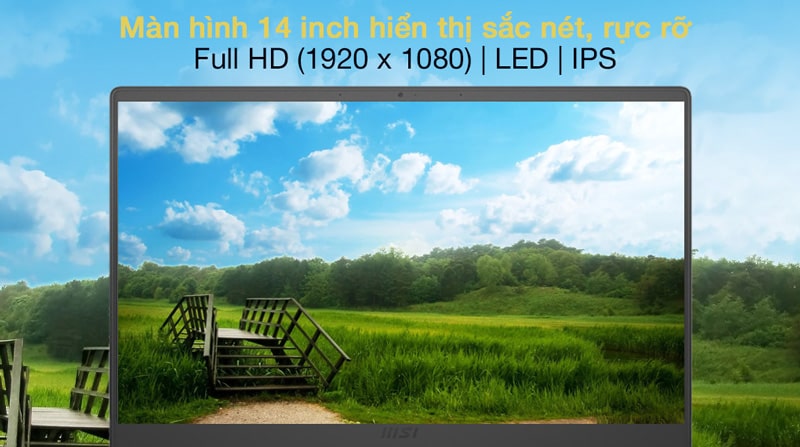 Laptop MSI Modern 14 B5M 204VN có màn hình 14 inch Full HD, độ bao phủ lên đến 65% sRGB và chống chói, sử dụng tầm IPS sẽ nâng cấp trải nghiệm nhìn của bạn lên tầm cao mới bằng hình ảnh sắc nét, độ tương phản cao, không bị ảnh hưởng do ánh sáng bên ngoài. Viền mỏng chỉ 5,7mm nên màn hình chiếm 80% tỉ lệ so với tổng màn hình máy mở rộng góc nhìn cho người dùng.